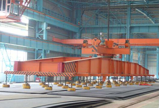 工作级别为A6,工作环境温度为-25~+40℃,海拔高度不超过2000m。在操纵室进行操纵,带有可卸的电磁盘,特别适用于冶金工厂在室内或露天的固定跨间较繁重地装卸及搬运具有磁性的黑色金属制品与材料(如钢锭、型钢、生铁块)在机械厂、库房中也常用来搬运钢料、铁块、废铁、废钢、铁屑等物料。